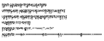 As variações dentro da família vão desde contornos densos e gotejantes até preenchimentos texturizados mais sólidos, proporcionando opções versáteis para designers que buscam amplificar a atmosfera e a profundidade de seus trabalhos. Cold Night for Alligators é ideal para títulos de pôsteres, convites de Halloween e mercadorias ousadas, convidando à criatividade que abraça o macabro e transforma cada palavra em um sussurro fantasmagórico.